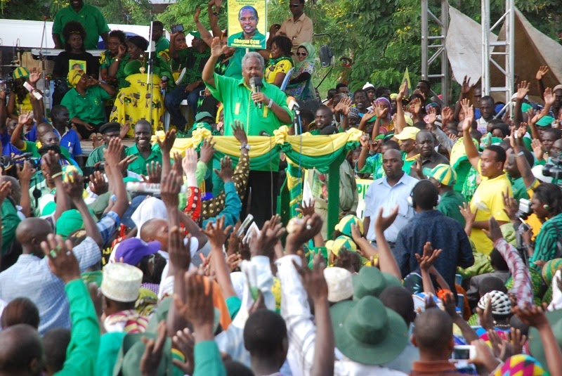 Katibu Mkuu wa CCM Abdulrahman Kinana akisisitiza jambo wakati akihutubia maelfu ya wananchi katika mkutano wa kuzindua kampeni za CCM uliofanyika leo kwenye Uwanja wa Miembe saba, Chalinze mkoa wa Pwani.